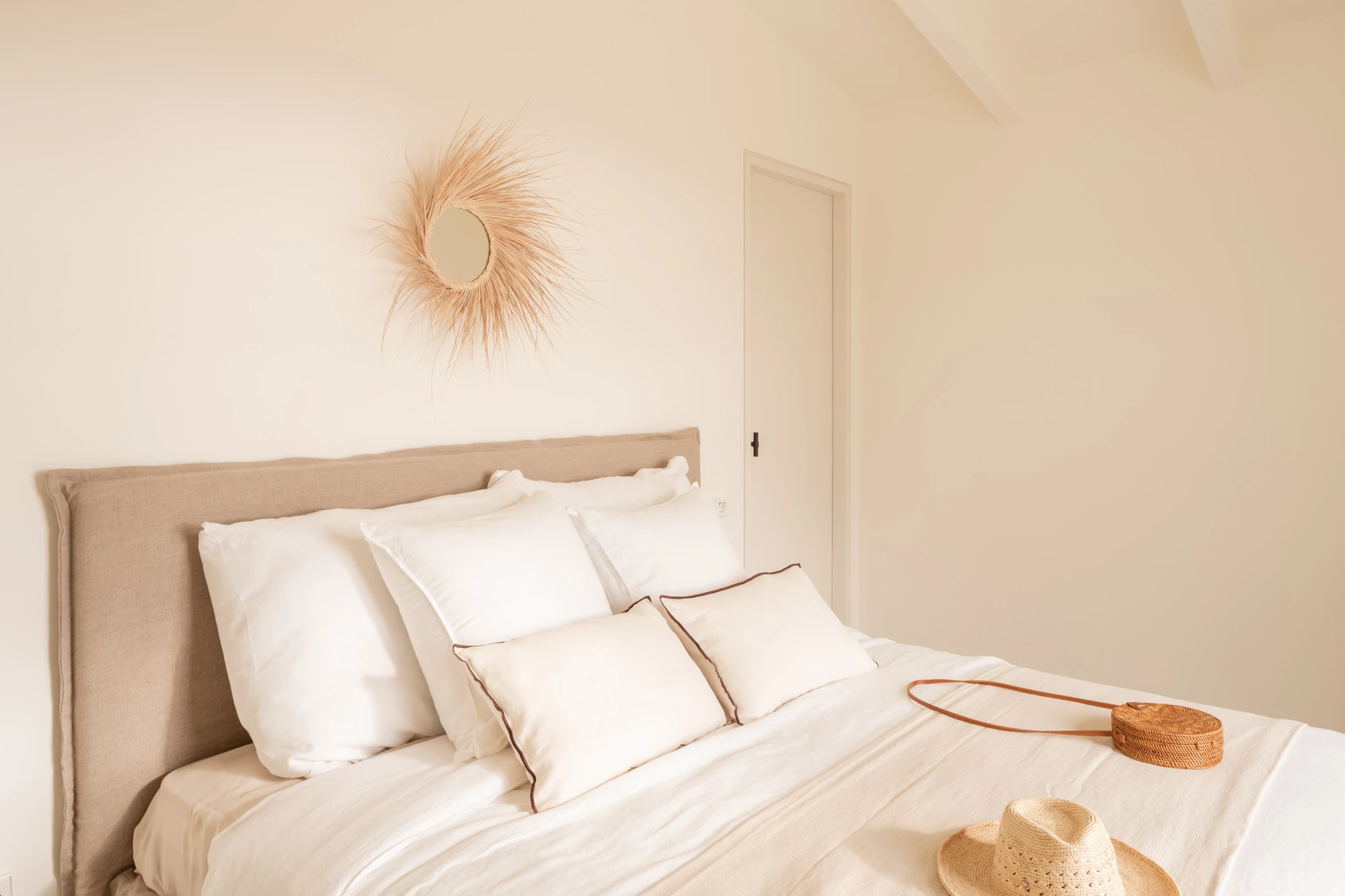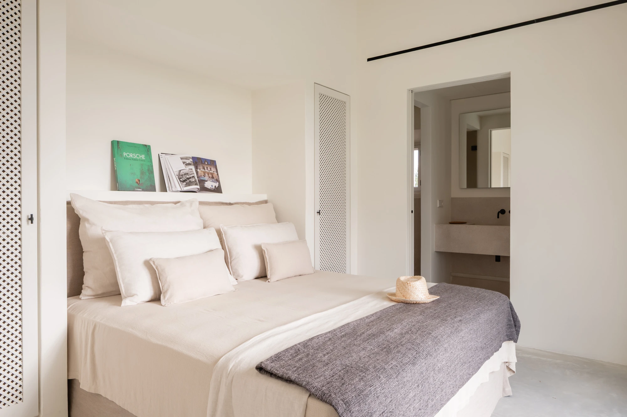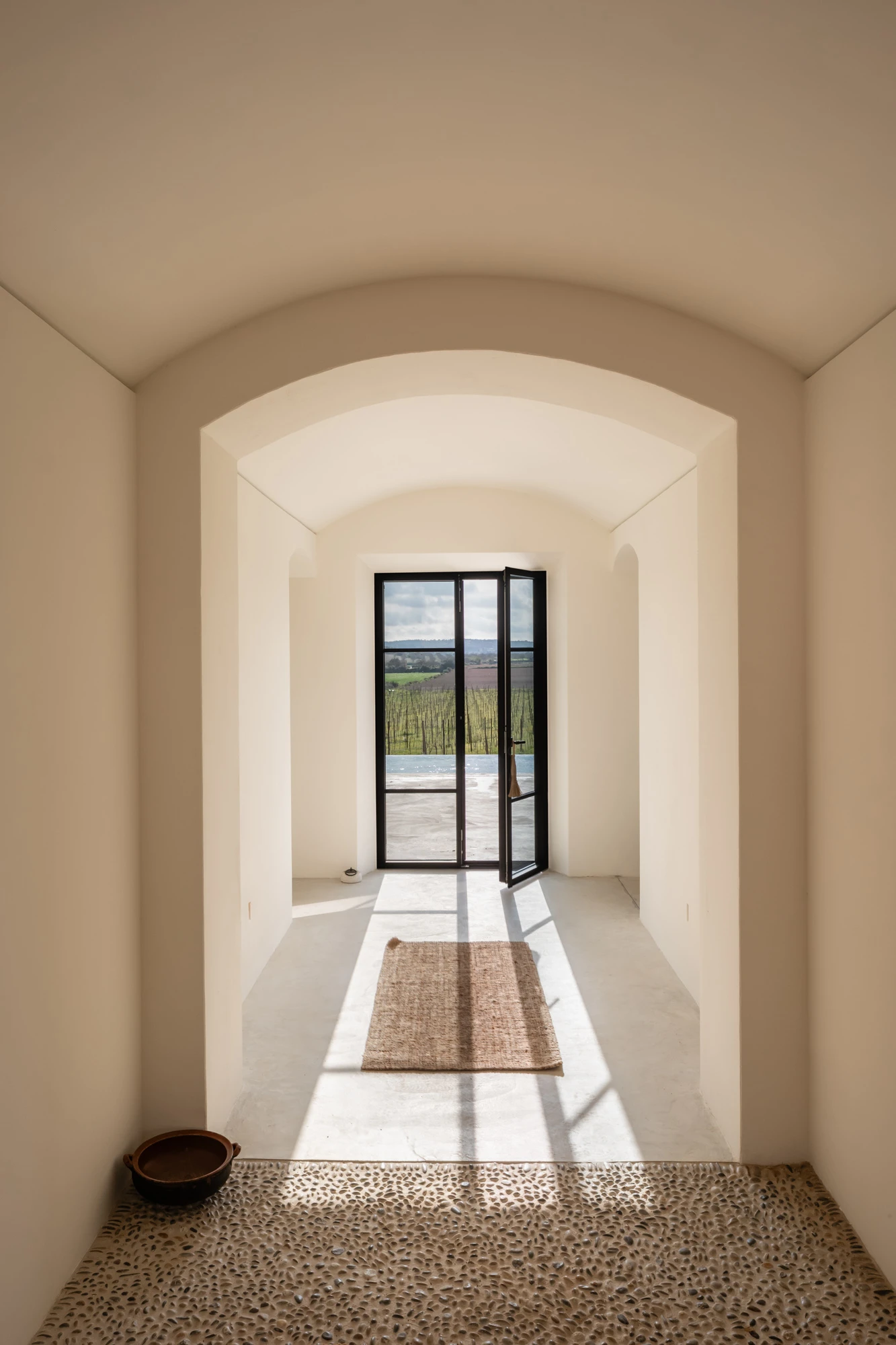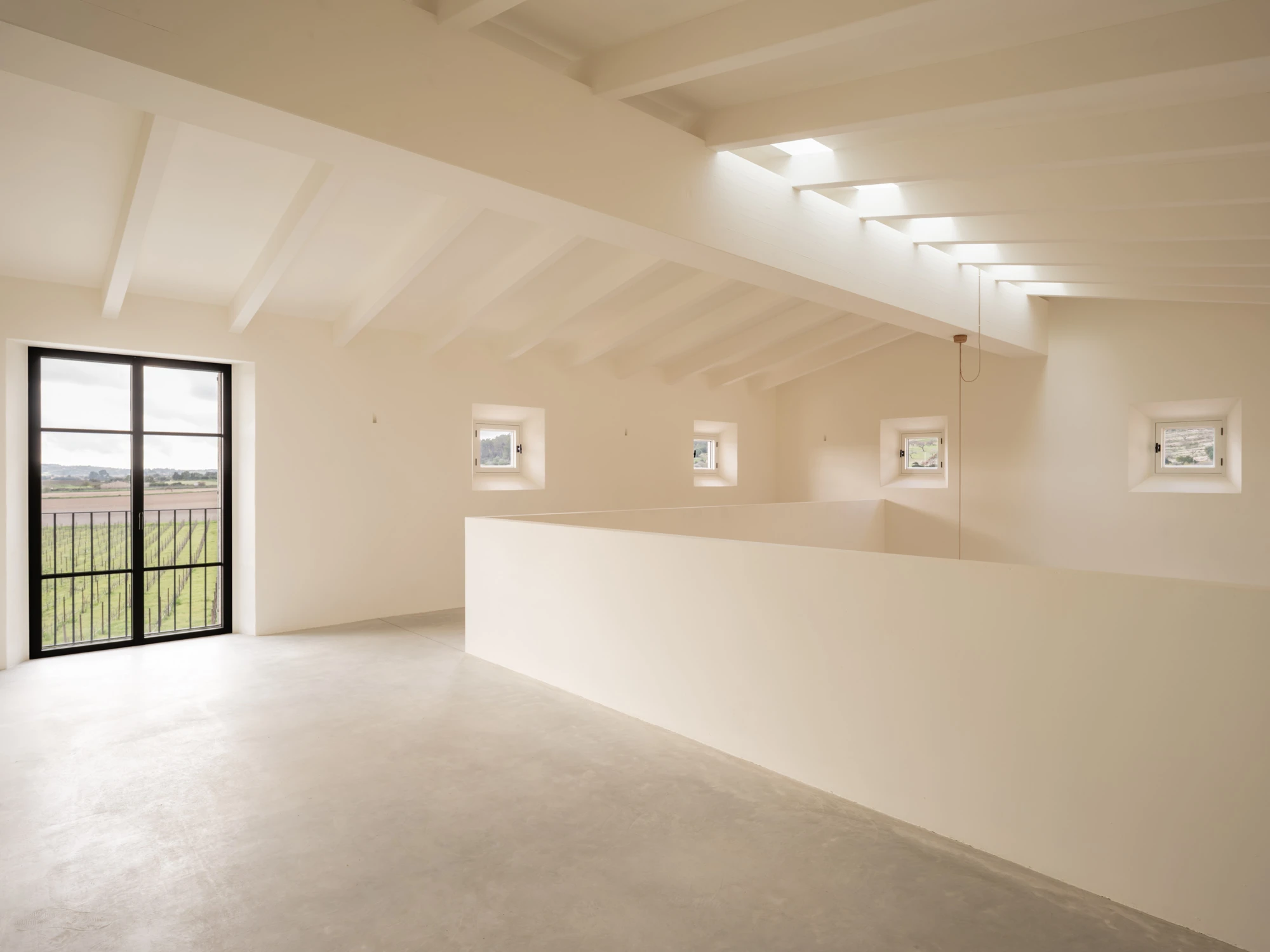 Ésta consta de planta baja y planta primera, junto con dos edificaciones anexas, un garaje y una habitación en suite. Además cuenta con una piscina desbordante, una zona de jardín y un viñedo de producción propia.